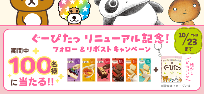 賞品:「新ぐーぴたっ6品セット」「ミニメモブックキーホルダー」(100名様)