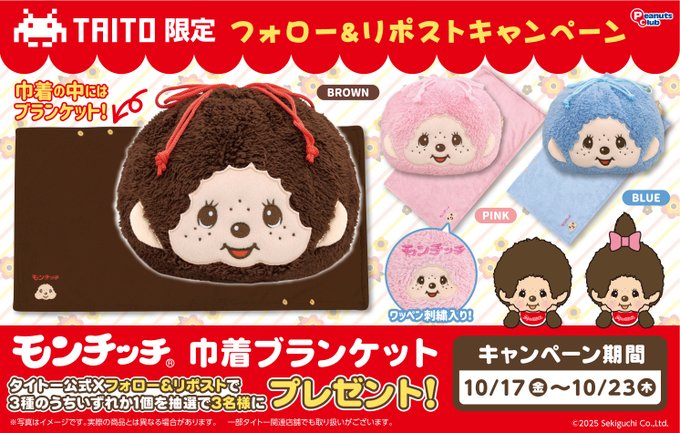 賞品:モンチッチ巾着付きブランケット(3名様)