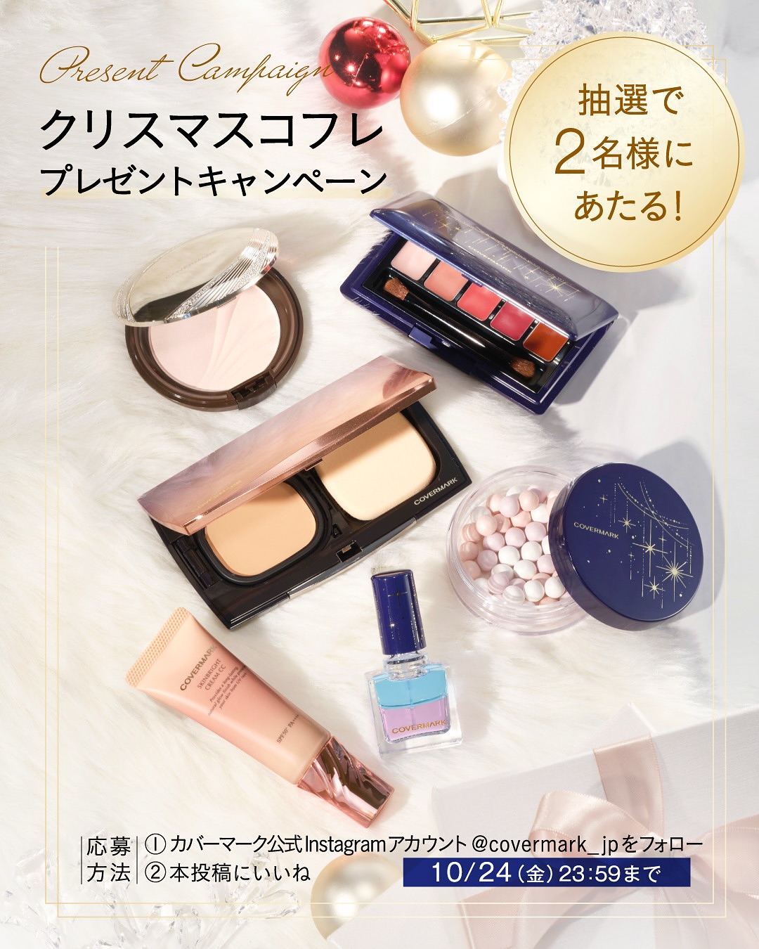 【Instagram懸賞】クリスマスコフレを2名様にプレゼント 2025.10.22カバーマーク‐クリスマスコフレキャンペーン 賞品:クリスマスコフレ(2名様) 締切:2025年10月24日(金)応募方法: 1. 公式Instagramアカウントをフォロー 2. 対象の投稿に「いいね!」※詳細はキャンペーンページにてご確認ください。応募はこちらから