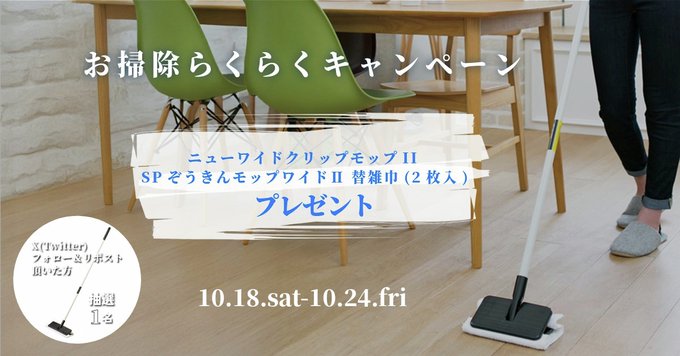 賞品:「ニューワイドクリップモップII 27cm」と「SPぞうきんモップワイドⅡ 替雑巾 (2枚入)」(1名様)