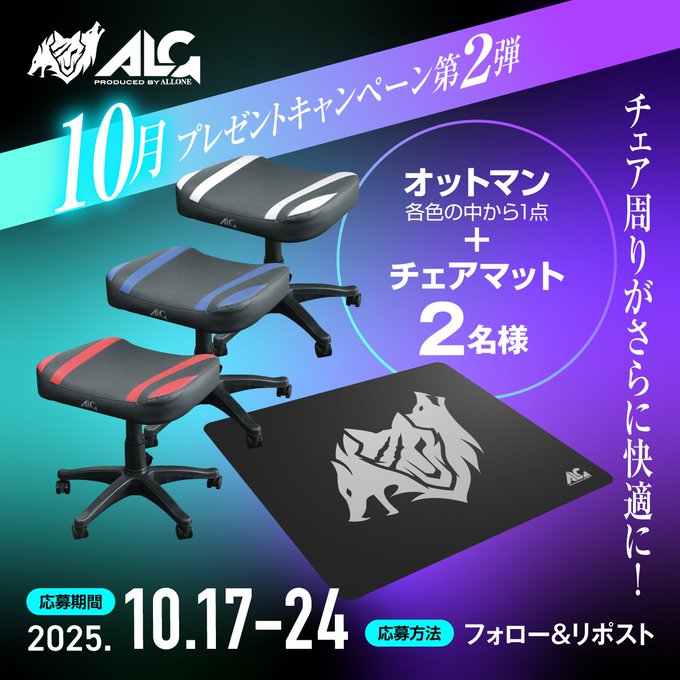 賞品:ゲーミングオットマン&ゲーミングチェアマット(2名様)