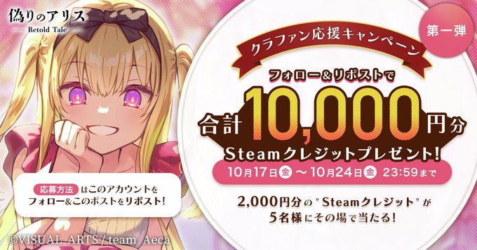 偽りのアリス公式X(Twitter)アカウントをフォロー&キャンペーン対象ポストをリポストして、記載されているURLからご応募ください。