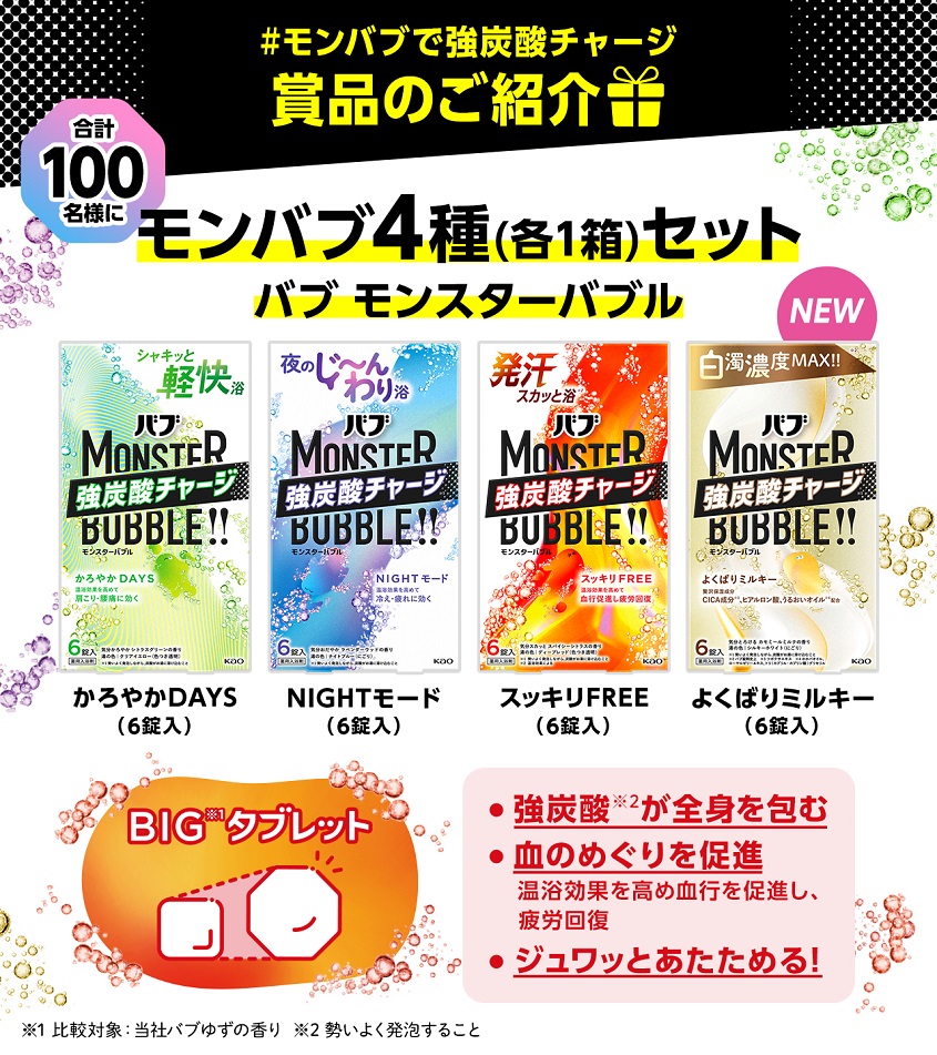 【X懸賞】モンバブ4種セットを100名様にプレゼント 2025.10.22バブ‐よくばりミルキー発売記念 賞品:モンバブ4種セット(100名様) 締切:2025年10月25日(土)公式X(Twitter)アカウントをフォロー&キャンペーン対象ポストをリポストしてご応募ください。※詳細はキャンペーンページにてご確認ください。応募はこちらから
