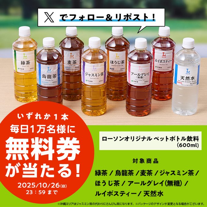 賞品:「ローソンオリジナルペットボトル飲料 600ml」無料券(50,000名様)