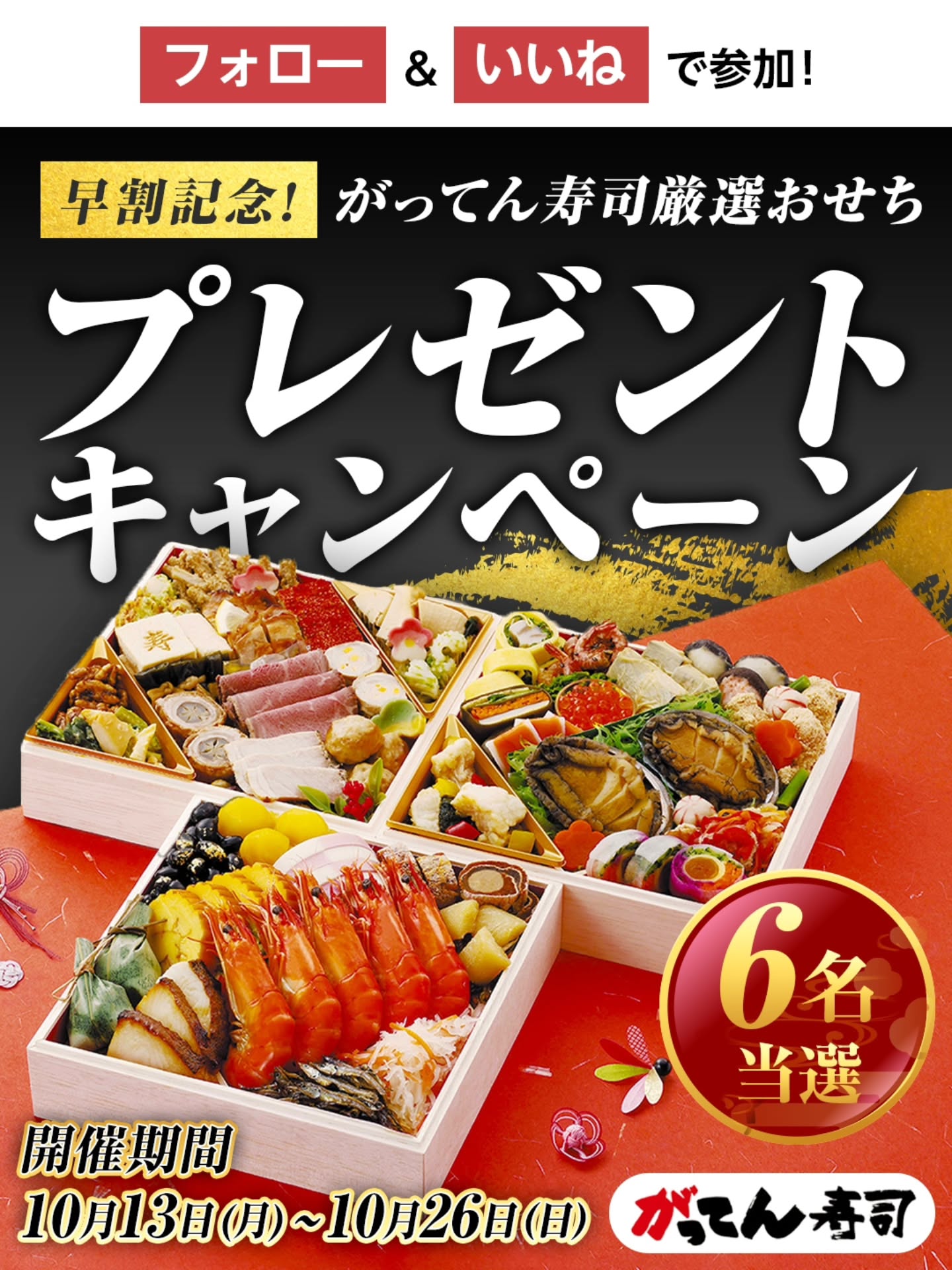賞品:RDCグループ自慢の「がってん寿司厳選おせち」(6名様)