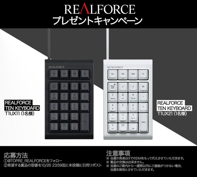 賞品:REALFORCE TEN KEYBOARD(2名様)
