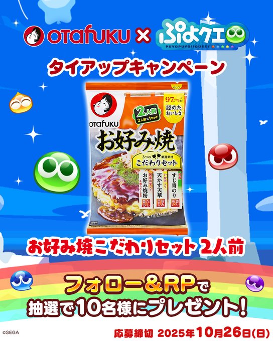 @puyoquestと@Otafuku_sをフォロー&キャンペーン対象ポストをリポストしてご応募ください。