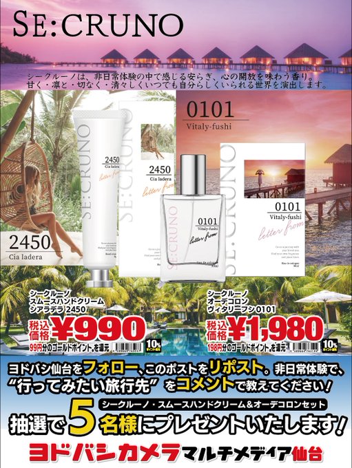 賞品:シークルーノのハンドクリームとオーデコロン2点セット(5名様)