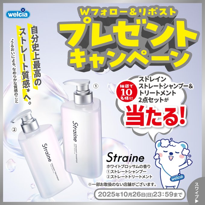 @welcia_jpと@straine_jpをフォロー&キャンペーン対象ポストをリポストしてご応募ください。