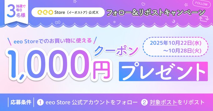 eeo Store online公式X(Twitter)アカウントをフォロー&キャンペーン対象ポストをリポストしてご応募ください。