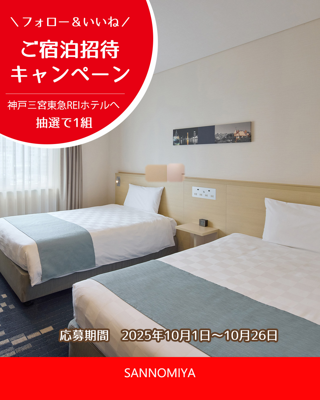賞品:神戸三宮東急REIホテル 宿泊ご招待(1組2名様)