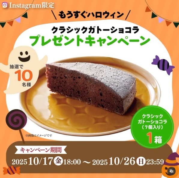 賞品:クラッシックガトーショコラ1箱(10名様)