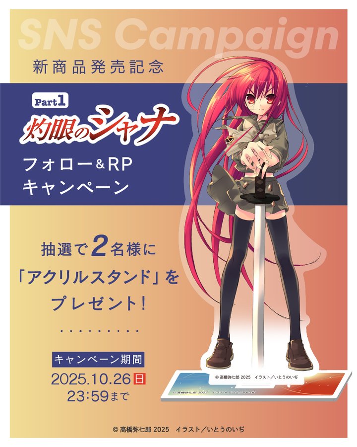 【X懸賞】アクリルスタンドを2名様にプレゼント 2025.10.24EDITION 88‐フォロー&リポストキャンペーン 賞品:アクリルスタンド(2名様) 締切:2025年10月26日(日)公式X(Twitter)アカウントをフォロー&キャンペーン対象ポストをリポストしてご応募ください。※詳細はキャンペーンページにてご確認ください。応募はこちらから