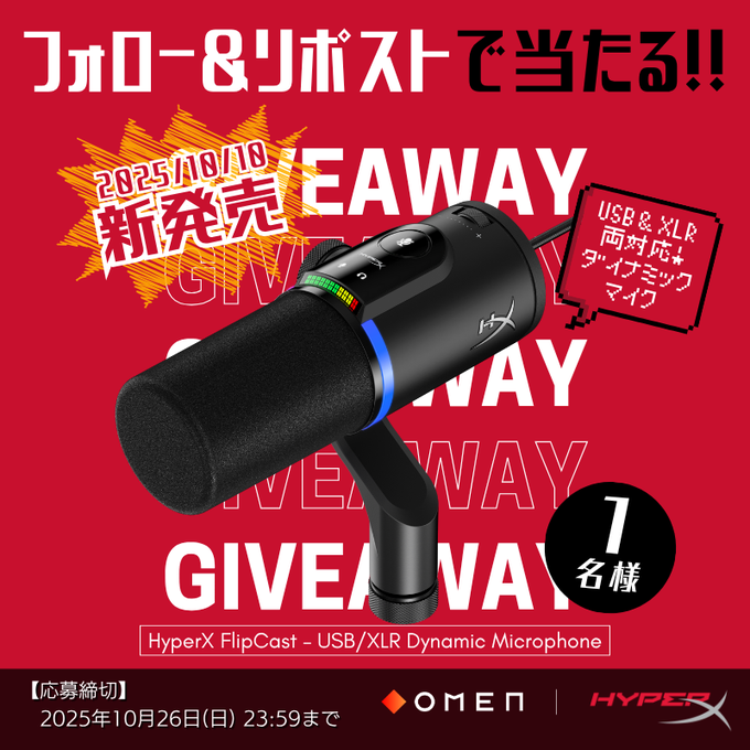 @OMENbyHP_jpと@HyperXJapanをフォロー&キャンペーン対象ポストをリポストしてご応募ください。