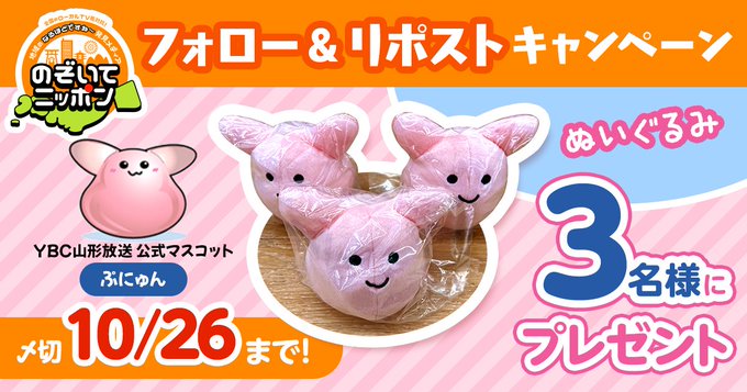 賞品:YBC山形放送「公式マスコット ぷにゅん」グッズ(3名様)