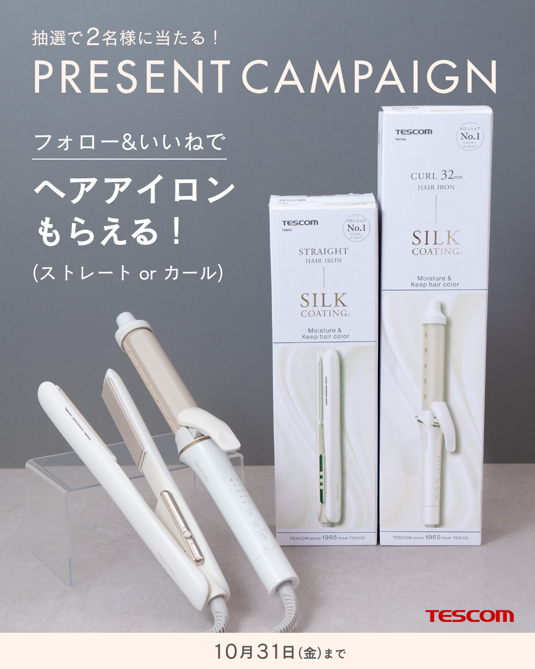 賞品:マイナスイオン ストレートアイロン、マイナスイオン カールアイロン(2名様)