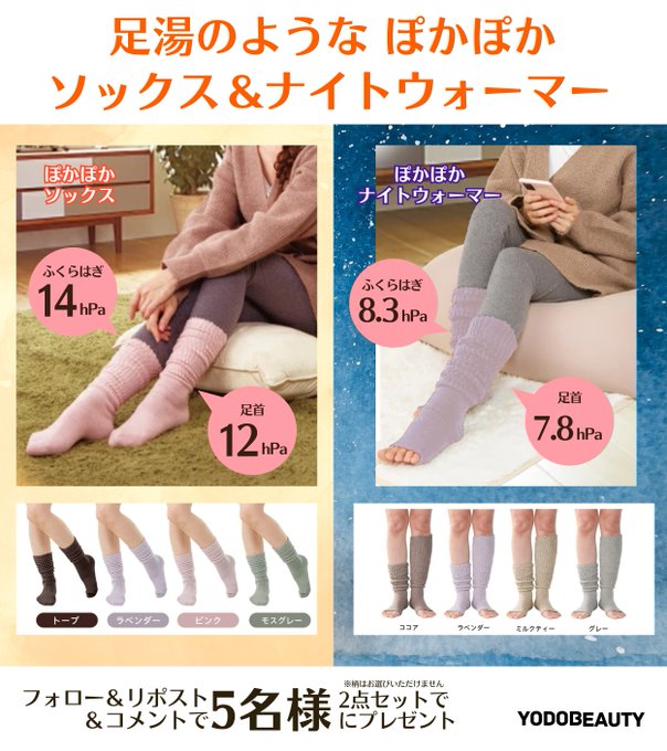 賞品:インフィニティー「足湯のような ぽかぽかソックス / ナイトウォーマー」2点セット(5名様)