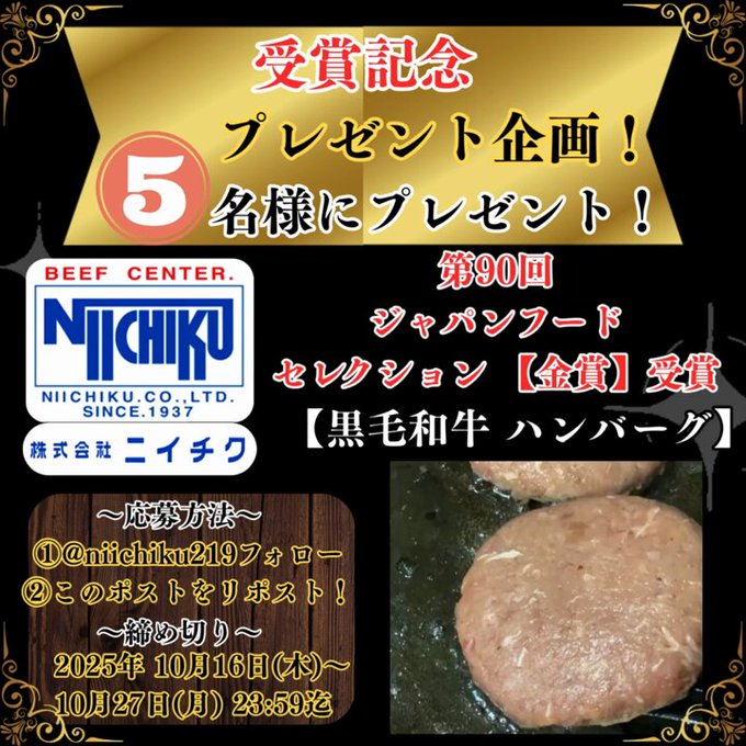 賞品:黒毛和牛ハンバーグ120g 4パック(5名様)