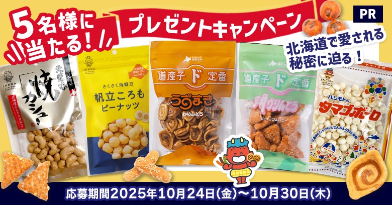 池田食品・浜塚製菓のお菓子5種の詰合せを5名様にプレゼント 2025.10.26 2025.10.25お菓子と、わたし‐読者限定プレゼントキャンペーン 賞品:池田食品・浜塚製菓のお菓子5種の詰合せ(5名様) 締切:2025年10月30日(木)アンケートに答えてご応募ください。※詳細はキャンペーンページにてご確認ください。応募はこちらから