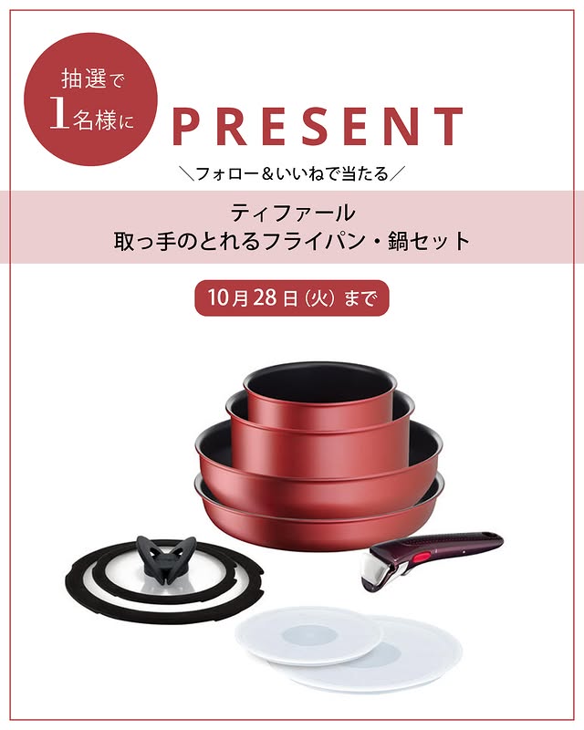 【Instagram懸賞】ティファール 取っ手のとれるフライパン・鍋セットを1名様にプレゼント