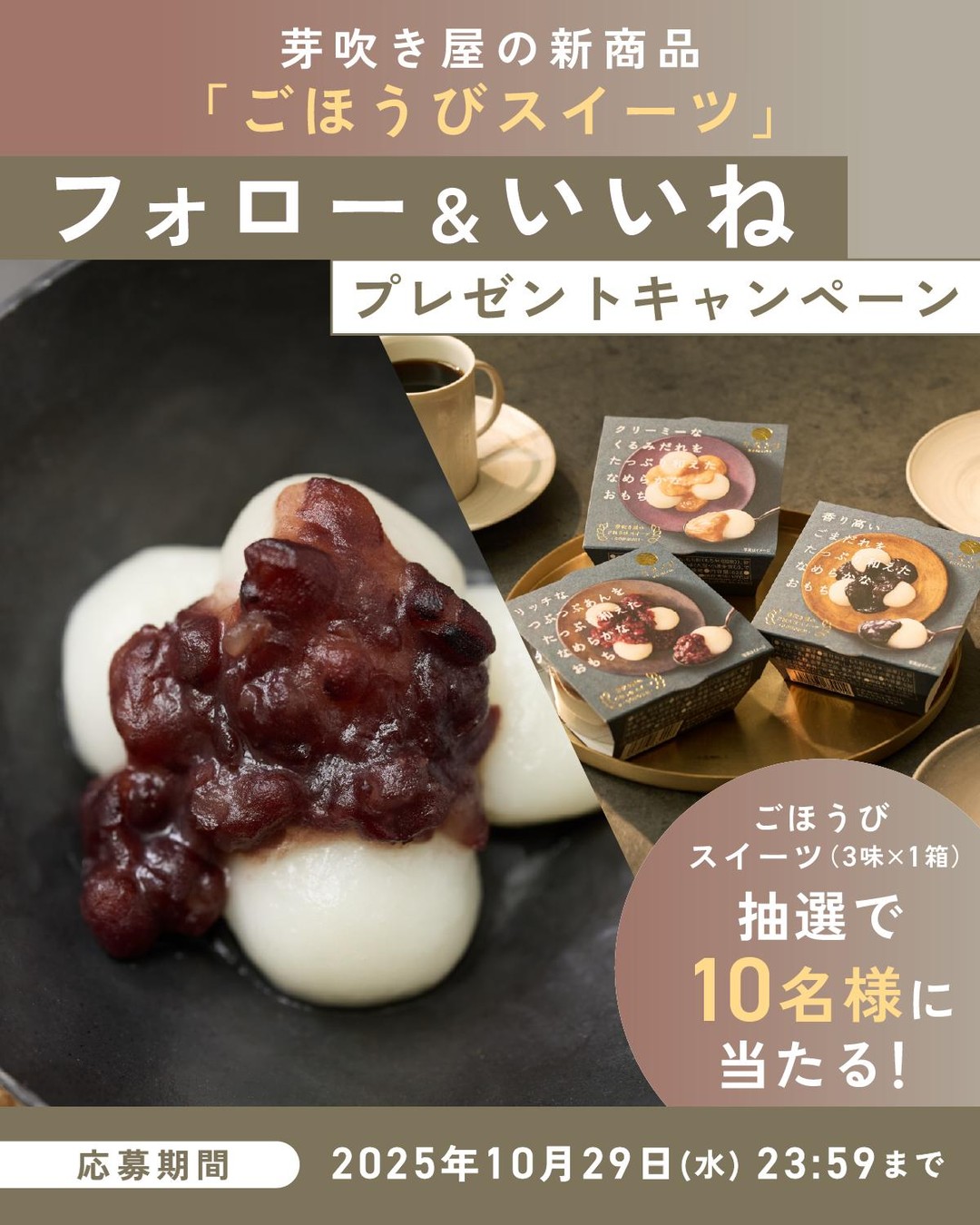 芽吹き屋のごほうびスイーツ フォロー&いいねキャンペーン