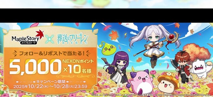 『メイプルストーリー』 × アニメ『葬送のフリーレン』 コラボ記念 フォロー&リポストキャンペーン第2弾