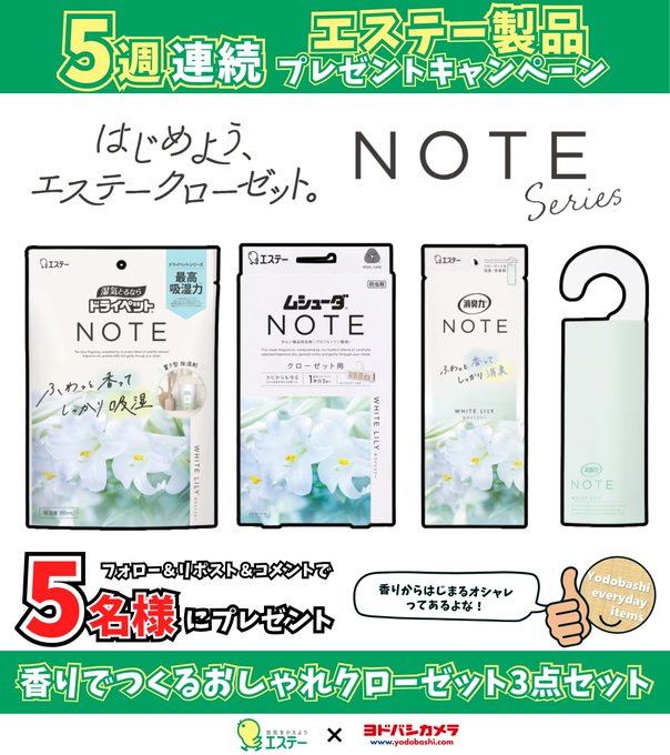 賞品:ムシューダNOTE&ドライペットNOTE&消臭力NOTE クローゼット用(5名様)