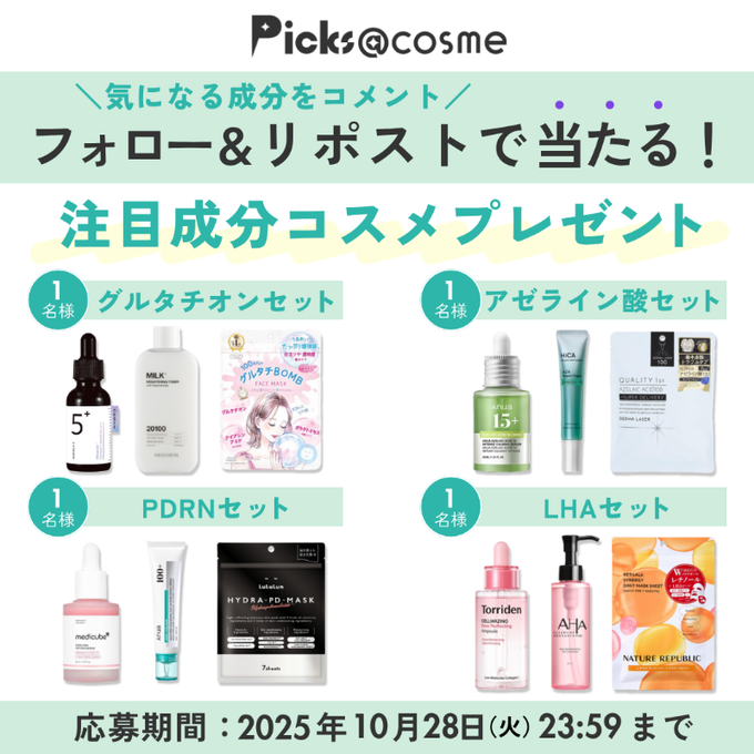 賞品:注目成分コスメ詰め合わせ(4名様)