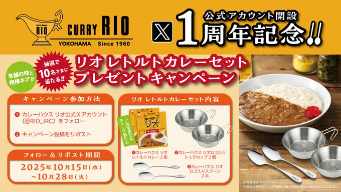 カレーハウス リオ 公式Xアカウント開設1周年記念 プレゼントキャンペーン