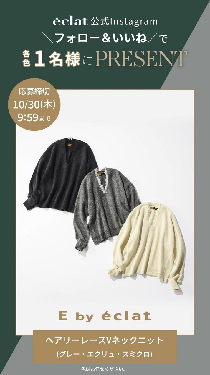 賞品:Room no.8 for E by eclat 「ヘアリーレースVネックニット」(3名様)