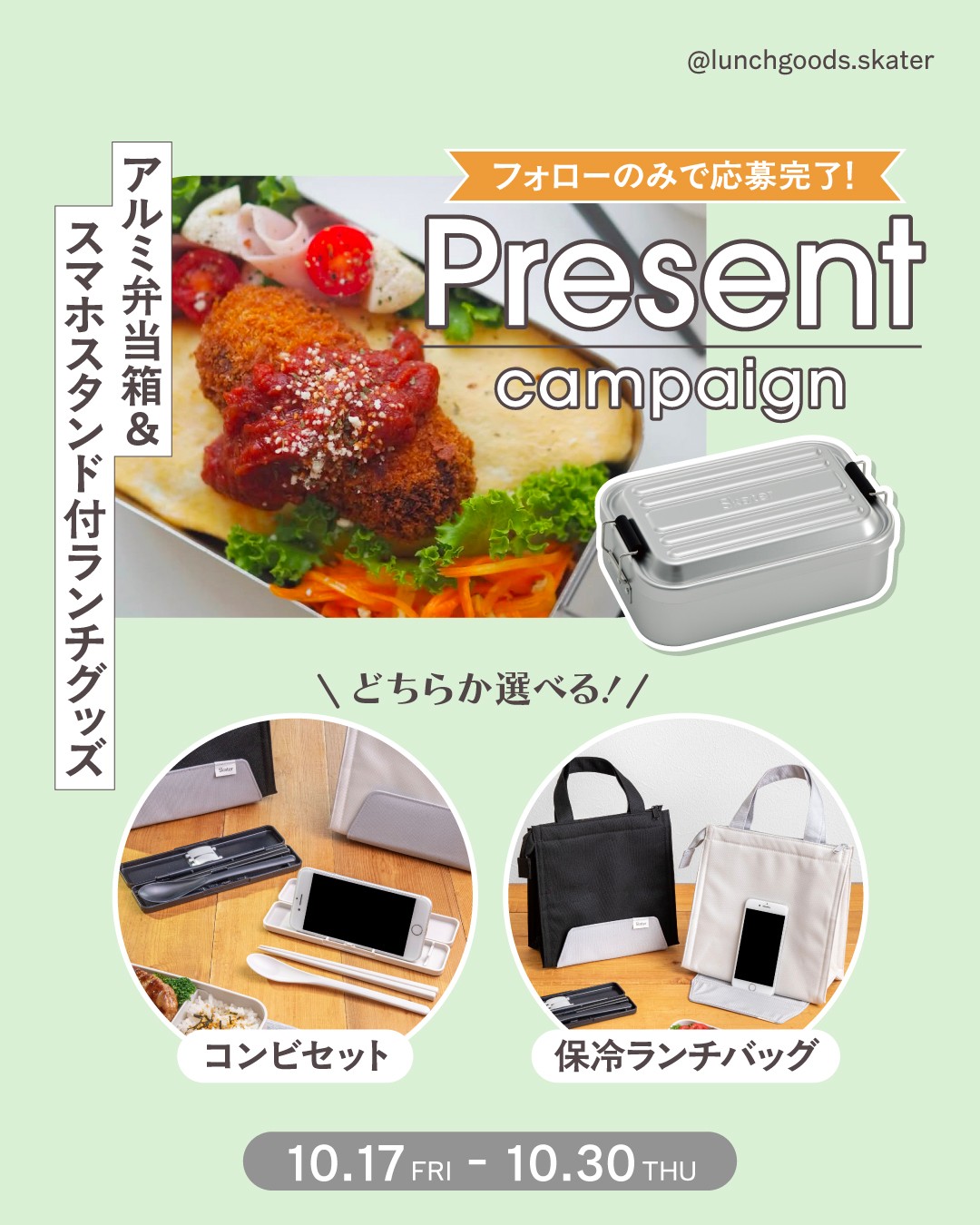賞品:アルミ弁当箱&スマホスタンド付ランチグッズ(5名様)