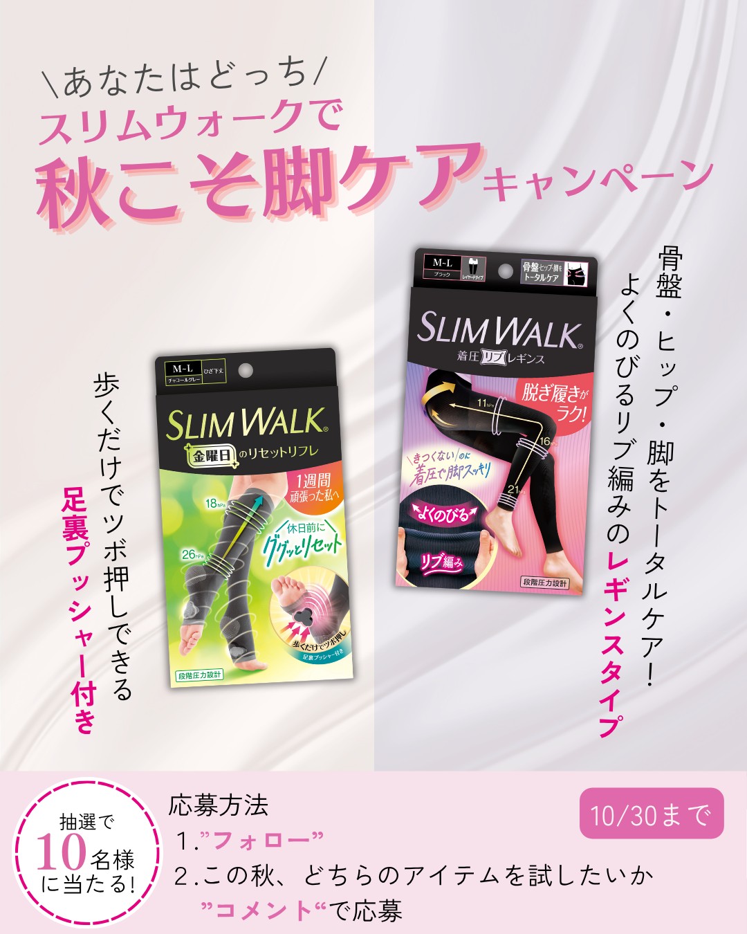 【Instagram懸賞】スリムウォーク 金曜日のリセットリフレ、着圧リブレギンスを10名様にプレゼント