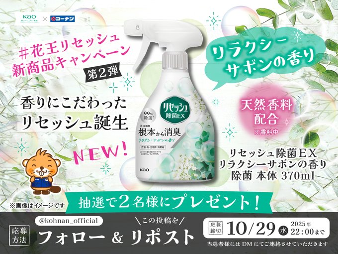 賞品:花王 リセッシュ除菌 EX リラクシーサボンの香り(2名様)