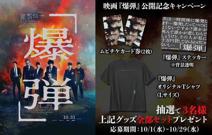 賞品:映画『爆弾』ムビチケカード&グッズ(3名様)