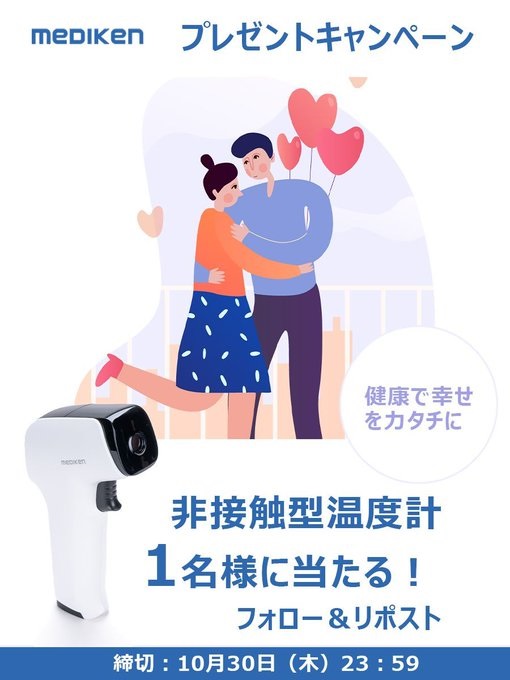 【X・Instagram懸賞】非接触型温度計を1名様にプレゼント 2025.10.27Mediken‐プレゼントキャンペーン 賞品:非接触型温度計(1名様) 締切:2025年10月30日(水)公式X(Twitter)アカウントをフォロー&キャンペーン対象ポストをリポストしてご応募ください。Instagramからも応募できます。※詳細はキャンペーンページにてご確認ください。応募はこちらから