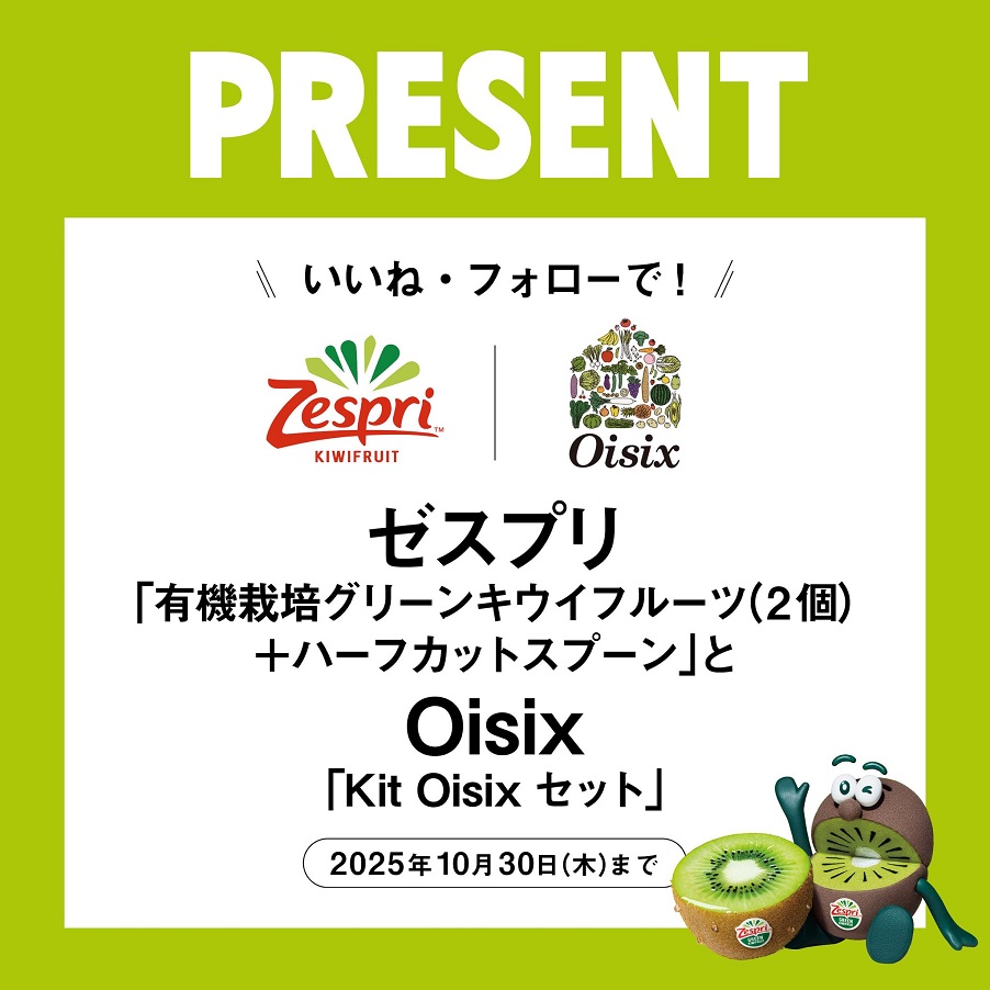 賞品:ゼスプリ「有機栽培グリーンキウイフルーツ(2個)+ハーフカットスプーン」とOisix「 Kit Oisixセット」(10名様)