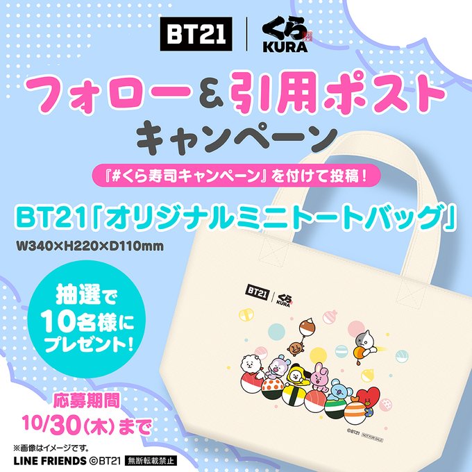 賞品:BT21『オリジナルミニトートバッグ』(10名様)