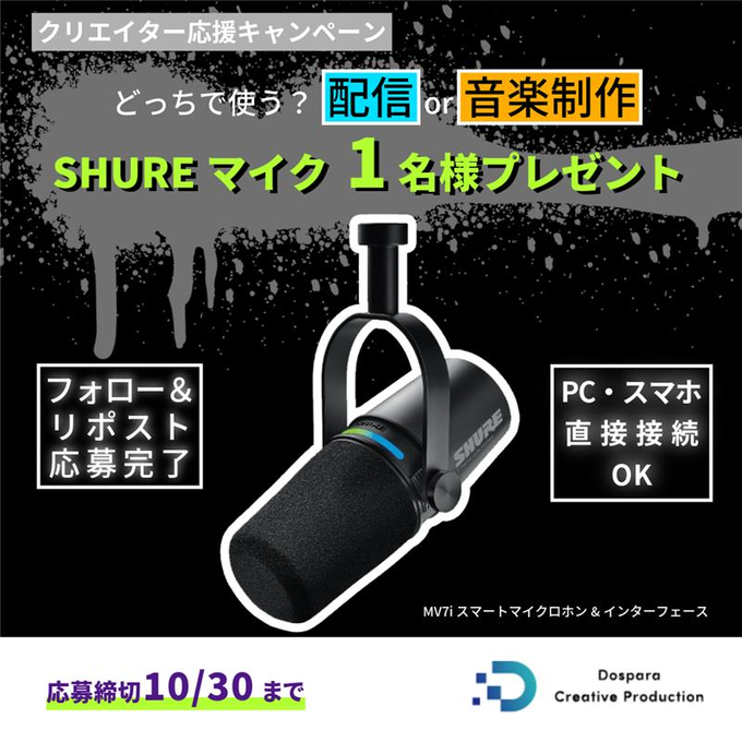 賞品:SHURE MV7i スマートマイクロホン&インターフェース(1名様)