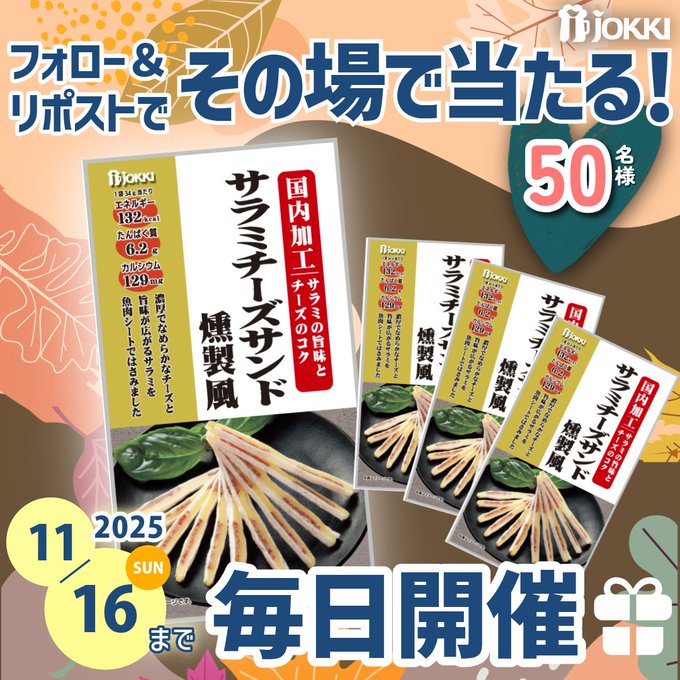 賞品:サラミチーズサンド燻製風4袋セット(50名様)