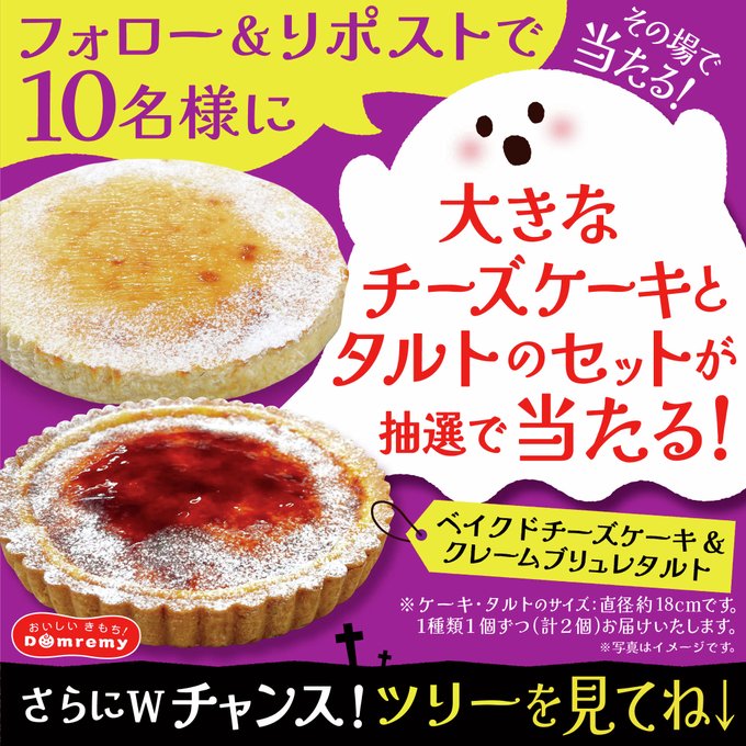 賞品:大きなチーズケーキとタルトのセット(10名様)