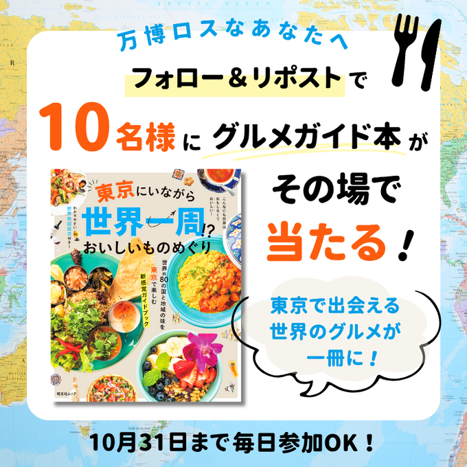 賞品:『東京にいながら世界一周!?おいしいものめぐり』(10名様)