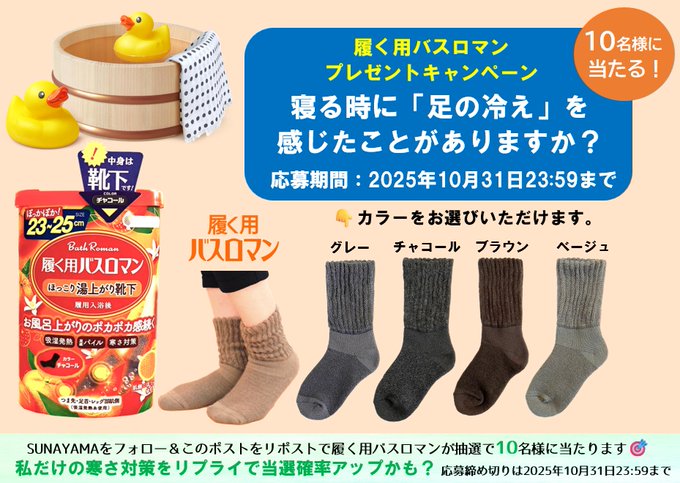 【X懸賞】履く用バスロマンを10名様にプレゼント