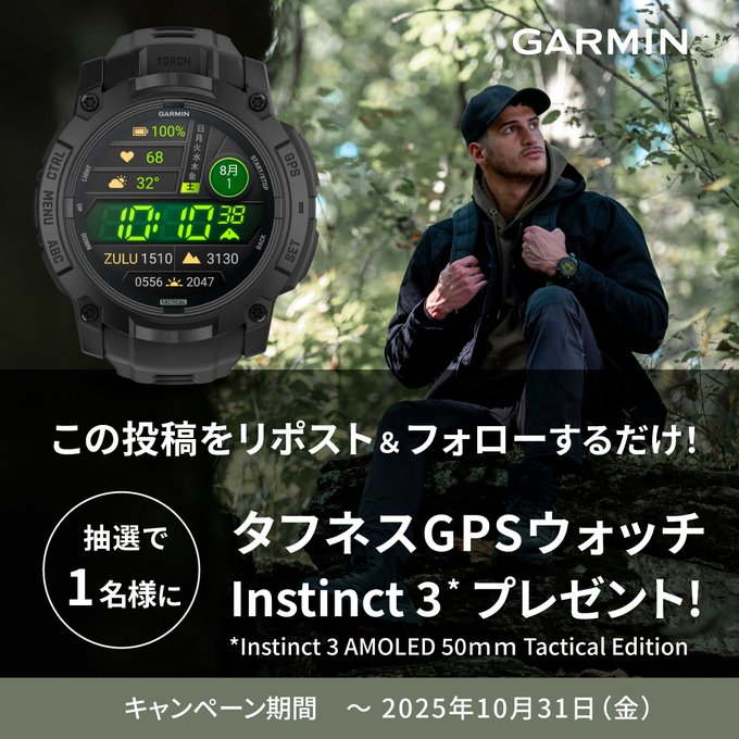 賞品:タフネスGPSウォッチ「Instinct」(2名様)