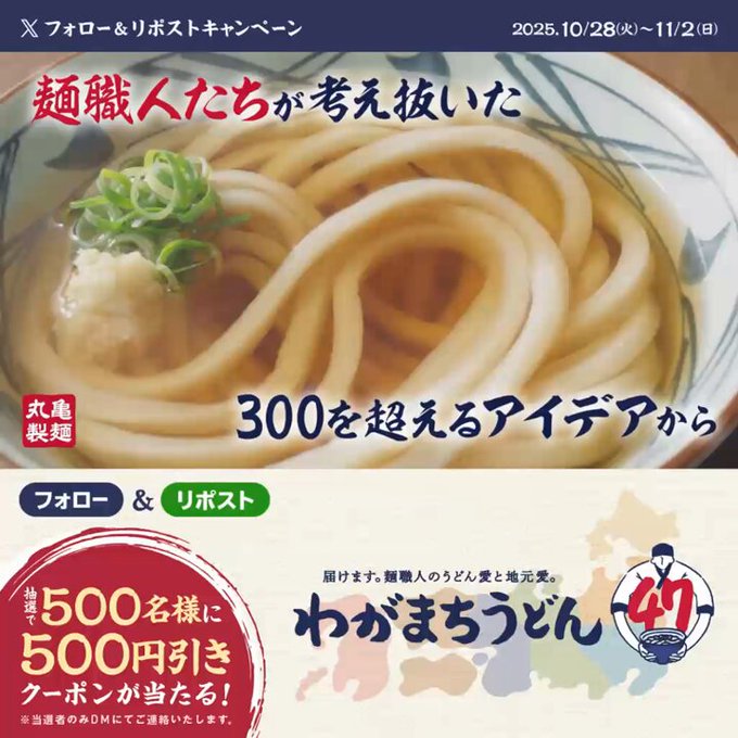丸亀製麺‐#わがまちうどん 47 TVCM フォロー&引用ポストキャンペーン
