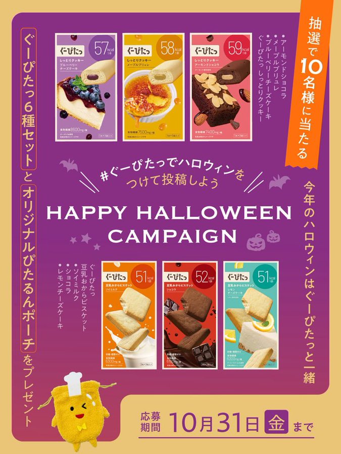 賞品:「新ぐーぴたっ6品」と「オリジナルぴたるんポーチ」(10名様)