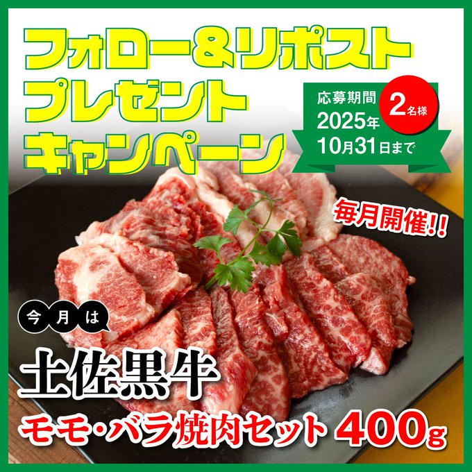 賞品:土佐黒牛モモ・バラ焼肉セット(2名様)