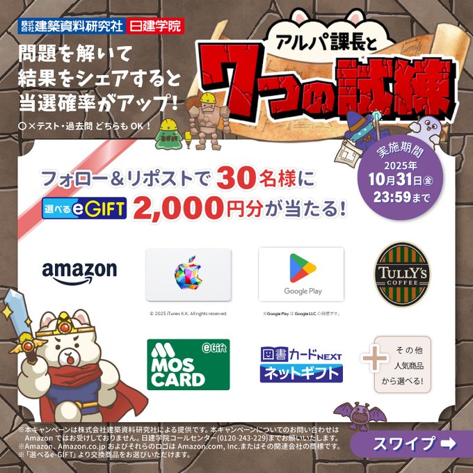賞品:選べるe-GIFT 2,000円分(30名様)