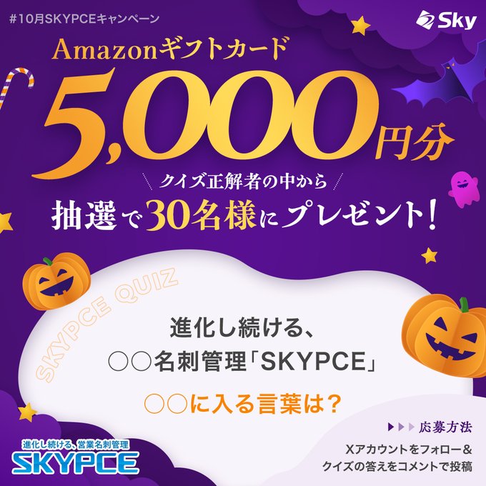 2️⃣「進化し続ける、○○名刺管理「SKYPCE」」の○○に入る言葉をコメント