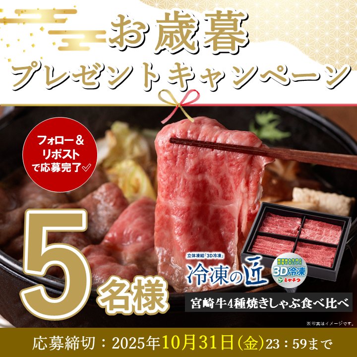 賞品:宮崎牛4種焼きしゃぶ食べ比べ(5名様)