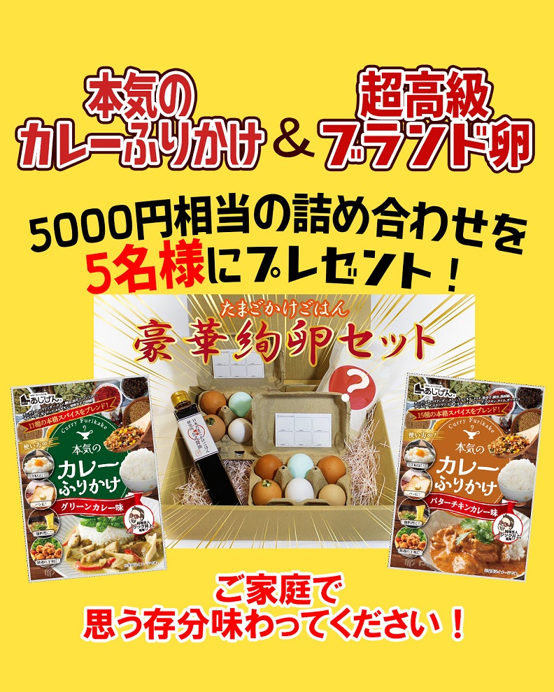 賞品:本気のカレーふりかけ&高級ブランド卵(五千円相当)(5名様)
